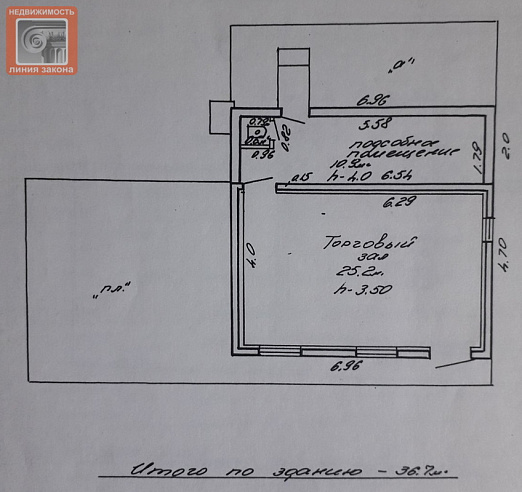 Продается помещение в хорошем состоянии площадью 36,7 м2, есть огороженная территория, участок 0.0074 га, назначение: здание специализированное розничной торговли. Есть свет, вода холодная, канализация, отопление - инфракрасный обогреватель. Приглашаем на просмотр!